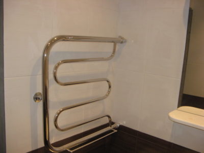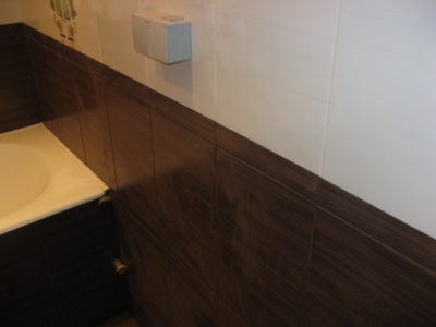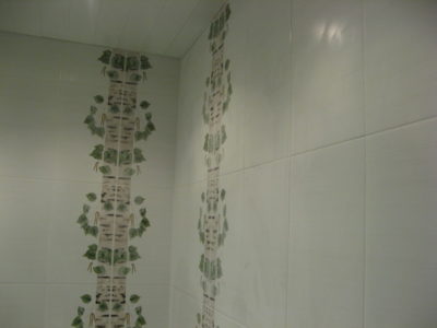 Основной упор при выполнении ремонта санузла на улице Теплый стан был сделан на эргономичность. В небольшом помещении мы установили ванну, мойдодыр на две секции, унитаз и электрический полотенцесушитель. Чтобы визуально расширить пространство, был уложен вертикальный рисунок с имитацией растущей березы на трех стенах. Для отделки поверхностей использовались керамические плиты контрастных белого и шоколадного цветов. Потолок оформлен пластиковыми панелями со встроенными светильниками. Смета на ремонт — 112 тысяч рублей. Черновые материалы обошлись в 34 тыс. руб.