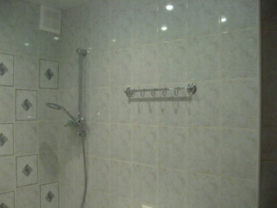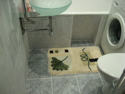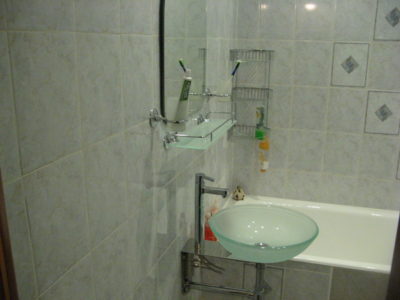 Наша компания выполнила косметический ремонт санузла на улице Усиевича. Благодаря выбору отделки светлых тонов удалось зрительно увеличить объем небольшого помещения. Легкости интерьеру придает подвесной умывальник со стеклянной мойкой. В комнате также установлены ванна, стиральная машина, унитаз и зеркало. Чтобы придать интерьеру нарядности, на глухой стене выложен узор из декоративной керамической плитки с орнаментом. Визуальному расширению пространства способствуют также точечные светильники, вмонтированные в потолочную конструкцию из пластиковых панелей. Смета на ремонт — 102 тысячи рублей. Закупка черновых материалов составила 34 тыс. руб.