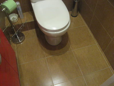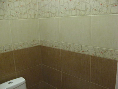 Наша компания выполнила ремонт санузла на улице Одесская. Особенности планировки позволили компактно расположить в нишах унитаз и тумбу с рукомойником и зеркалом. Модель мойдодыра укомплектована подвесными стеклянными полками со встроенными светильниками. Для оформления поверхностей мы выбрали белые и коричневые плитки с имитацией под срез дерева. Потолок выполнен из пластиковых панелей. Стоимость бюджетного ремонта составила 28600 руб. Стоимость черновых материалов — 8000 р.