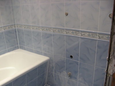 Для оформления поверхностей ванной комнаты и туалета в квартире (проезд Серебрякова) мы выбрали светло-бирюзовые оттенки. Таким образом удалось зрительно расширить пространство. Увеличению объема комнаты способствовали также установка точечных светильников на потолке. Для придания дизайну самобытности мы использовали декоративную фрезу и плитку с цветочным орнаментом. Инженерные коммуникации скрыты за защитным экраном позади нового унитаза и под ванной. Проведена новая электропроводка с выводом розеток для габаритной сантехники. Цена работы — 118 тысяч рублей. Стоимость черновых материалов — 33 тыс. р.